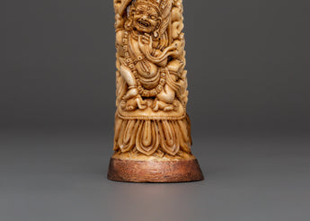 This Mahakala bone carving is perfect for collectors, practitioners, and those looking for spiritual protection. It reminds us of inner power and perseverance. Its unique combination of Yak Bone and a wooden Base represents a perfect marriage of heritage and artistry. Please place it in your meditation room, holy area, or personal shrine to bring protection and a stronger connection to your spiritual practice.