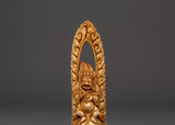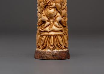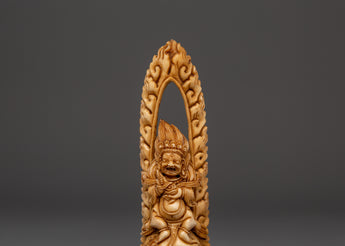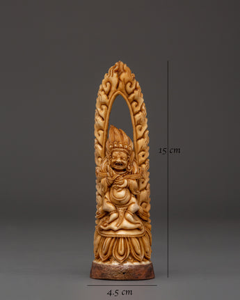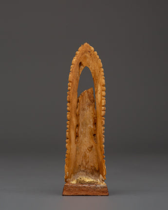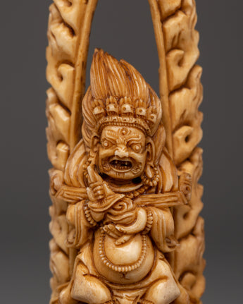 This lightweight yak bone monument, weighing only 0.066kg, combines traditional Tibetan workmanship with spiritual meaning. The wood base complements the sculpture's natural elements, creating a harmonious and authentic piece. This Mahakala tantric sculpture is ideal for people looking for Tibetan protector deity statues, ceremonial objects, or meditation equipment. It combines spiritual protection with cultural legacy in one handcrafted figure. Elevate your altar with this sacred Tibetan bone carving, representing power, protection, and spiritual clarity.