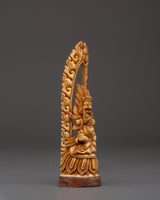 Bring the powerful protective energy of the Mahakala Tantric Sculpture into your holy place. This hand-carved figurine, 15cm tall and 4.5cm broad, is made from ethically sourced yak bone and stands on a natural wooden base. In Tibetan Buddhism, Mahakala is adored as a wrathful protector deity representing the destruction of bad forces while protecting spiritual practitioners. This exquisite sculpture exemplifies detailed craftsmanship while capturing Mahakala's furious face and symbolic features, making it an effective addition to meditation or ritual collections.