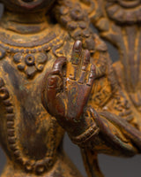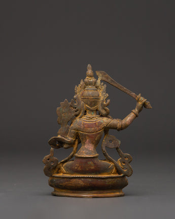 Crafted with extraordinary creativity, the copper body has a classic appeal that complements any spiritual setting. The weight of 0.48kg gives it a real, grounded feel, emphasizing its status as a sacred treasure. Incorporate this Tibetan Manjushri statue into your practice to bring out wisdom, compassion, and mental clarity. This handcrafted copper statue is ideal for individuals looking for authentic Buddhist decor, spiritual presents, or meditation tools. It mixes cultural devotion with stunning craftsmanship.
