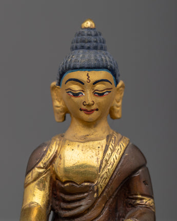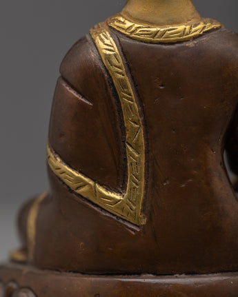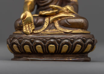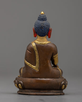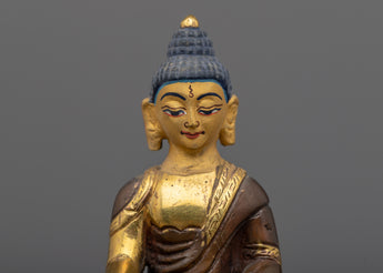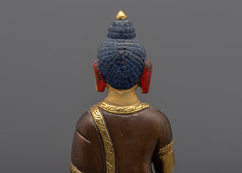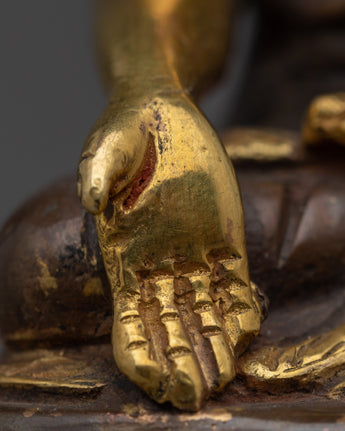 The meticulous handiwork on the copper body is a reflection of the unwavering dedication and skill that went into making this holy statue. The rich 24k gold gilding highlights the profound significance of Namo Ratna Sambhava and adds an extravagant touch. This heavenly figure is given life by the acrylic painting, which gives the statue a lively, heavenly presence.