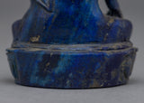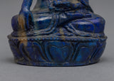This rare-sized Namo Shakyamuni Buddha statue is handcrafted on a single stone with acrylic painting. We have depicted the deity sitting elegantly on top of a moon disc lotus in this Tibetan statue. His right hand is in eath-touching mudra, while his left is holding an alms dish.