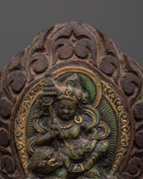 Namtoshe is often portrayed in a forceful and protective stance, representing strength and wealth. The powder highlights add to the statue's visual richness, creating a one-of-a-kind and significant spiritual piece. This item brings great energy and wealth to your home, altar, or meditation room.