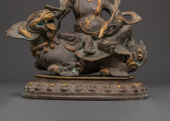 Exquisitely crafted with fine attention to detail, the Namtoshe Figurine features a copper body with antique finishing that highlights its elegance. The statue vividly captures Namtoshe’s regal posture, ornate crown, and symbolic attributes each embodying his divine authority, compassion, and generosity. Meticulously created using traditional Himalayan craftsmanship, this figurine serves as both a powerful spiritual talisman and an extraordinary piece of Buddhist art. Perfect for personal devotion, thoughtful gifting, or as a stunning focal point in your home or altar, it brings profound blessings and a touch of sacred beauty to any space. Embrace this symbol of protection and generosity to enrich your spiritual practice and surroundings.