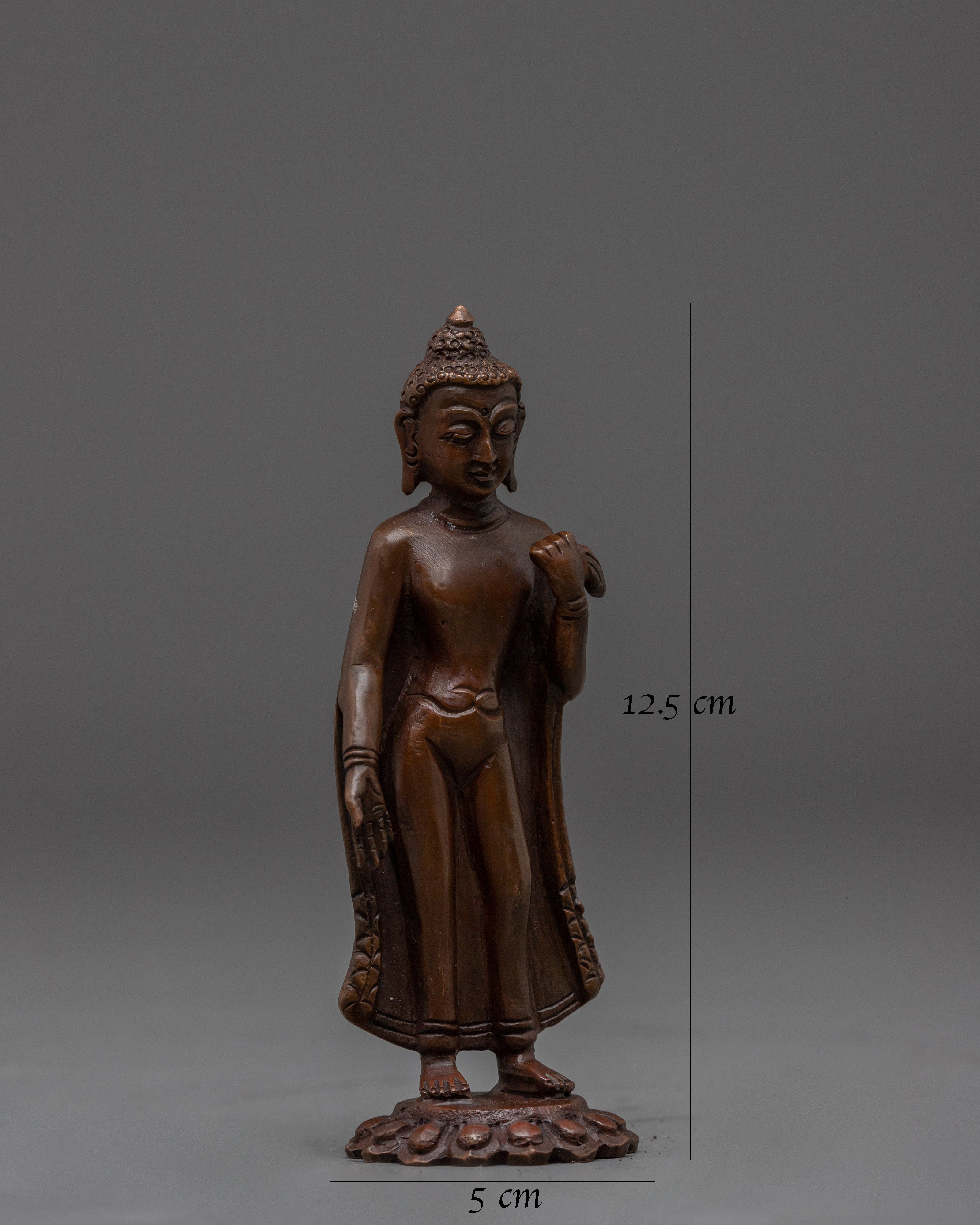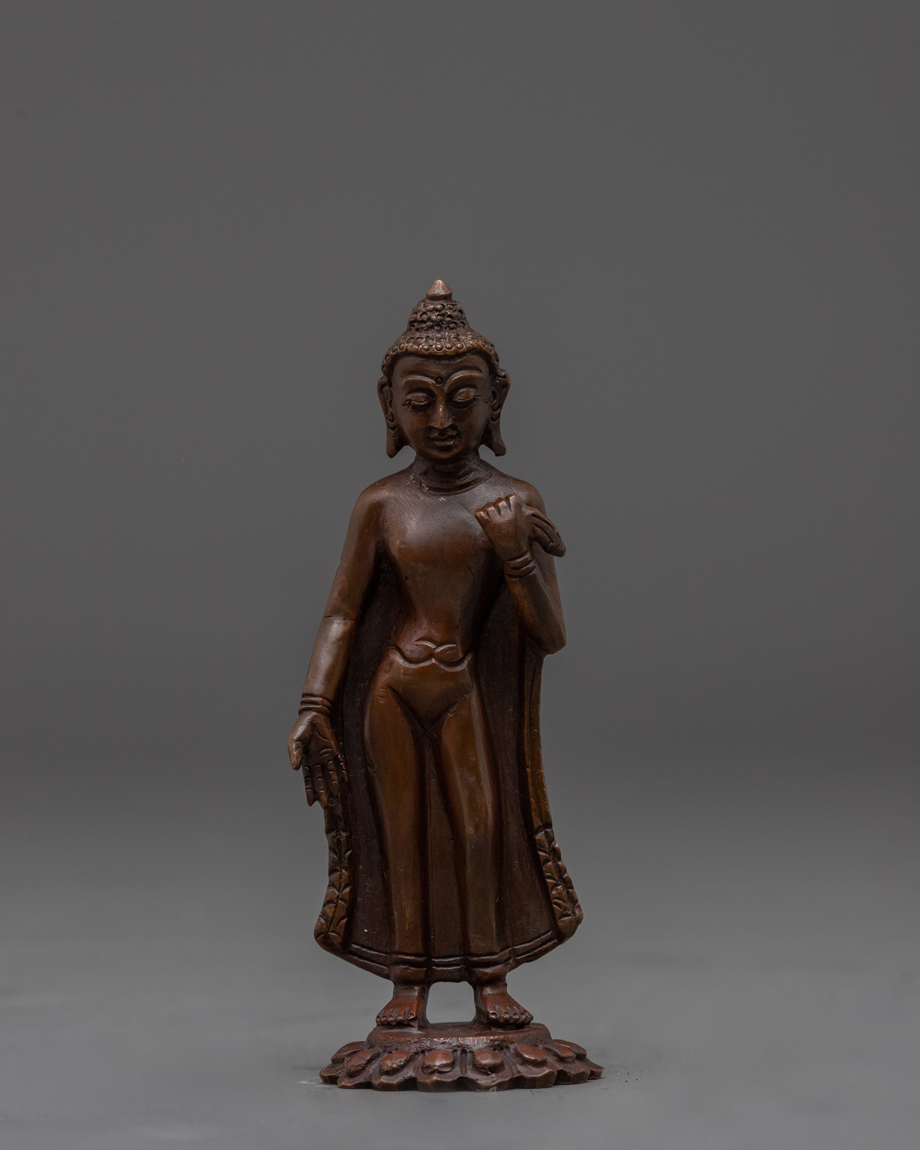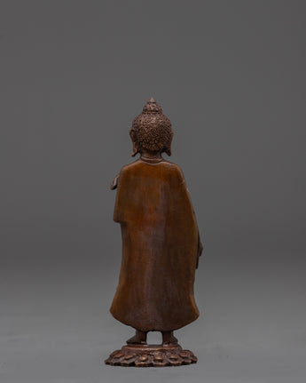 Oxidized Copper Dipankara Buddha | Standing Enlightened Being in Copper
