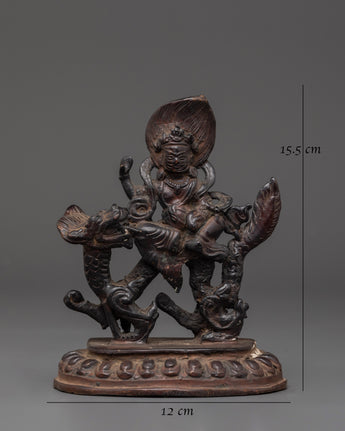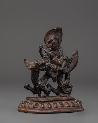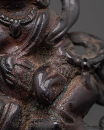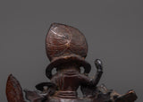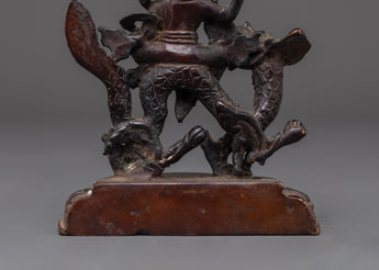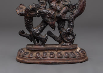 Dzambhala is known for bestowing blessings of financial stability and spiritual wealth to those who seek it. This statue’s detailed craftsmanship and serene expression capture his powerful presence, making it an ideal addition to any meditation space, altar, or spiritual decor. The oxidized copper finish adds a unique, antique-like appeal, enhancing its spiritual energy and aesthetic value.
