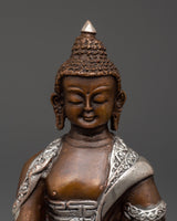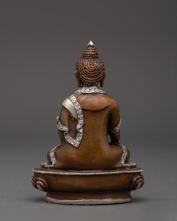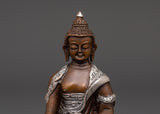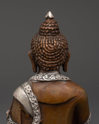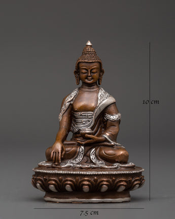 The oxidized copper body gives the sculpture an earthy feel, while the silver plating adds a divine finish that enhances its spiritual significance. Perfectly sized for altars, meditation rooms, or spiritual spaces, this statue brings tranquility and positive energy to any environment. Whether used for daily meditation or as a sacred decorative piece, it serves as a powerful reminder of the Buddha’s teachings and the potential for enlightenment within each of us.