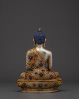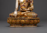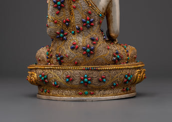 Handcrafted Peaceful Shakyamuni Buddha Sacred Figurine | Decorated with Turquoise & Coral Artificial Stones