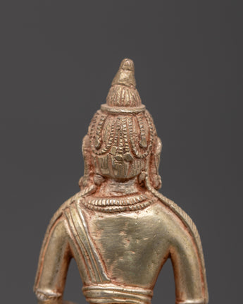 This Pure Land Amitabha Buddha Statue is a refined representation of the Buddha of Infinite Light, a central figure in Pure Land Buddhism. Measuring 21 cm in height and weighing 0.67 kg, the piece is crafted from copper with a radiant silver-plated finish. The seated Buddha rests on a lotus base, a symbol of purity and spiritual awakening, embodying the serene qualities of meditation and enlightenment. With carefully defined features and graceful symmetry, the statue invites contemplation and devotion.