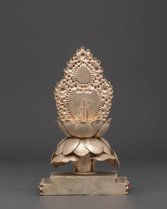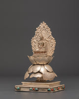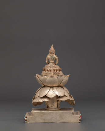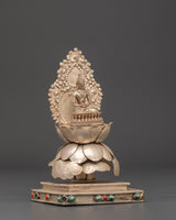 Sacred Pure Land Amitabha Buddha Statue | Silver Plated Buddhist Sculpture