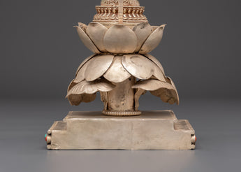 As the Buddha of Infinite Light, Amitabha is revered for his role in guiding beings toward rebirth in the Pure Land, a realm of ultimate peace and liberation. This Pure Land Amitabha Buddha Statue is ideal for personal altars, meditation spaces, or as a meaningful gift for practitioners of Buddhism. With its silver-plated brilliance, coral and turquoise details, and sacred symbolism, this Buddhist sculpture embodies compassion, wisdom, and the radiant blessings of Amitabha.