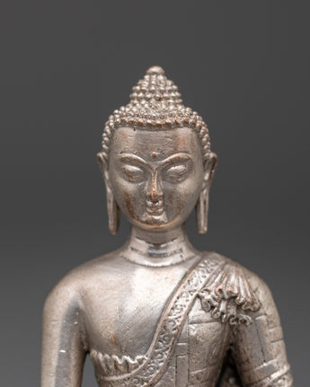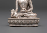 This Sacred Healing Buddha Sculpture, expertly crafted from copper and finished with a silver plating, is designed to bring a deep sense of inner peace and healing to your meditation practice.