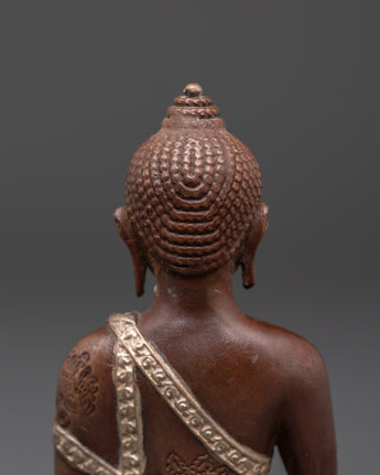 This Sacred Sculpture of the Medicine Buddha embodies the compassionate healing deity revered in Buddhism for his vows to alleviate suffering and restore harmony. Crafted from oxidized copper with a silver-plated finish, the statue measures 10cm in height and 7.5cm in width, weighing 0.18kg, making it a perfect size for meditation rooms, home shrines, or sacred spaces. Beyond its intricate design, this statue serves as a powerful symbol of divine healing and spiritual protection, inspiring a sense of peace and well-being. Place it in your sacred environment to support your healing journey and deepen your spiritual practice.