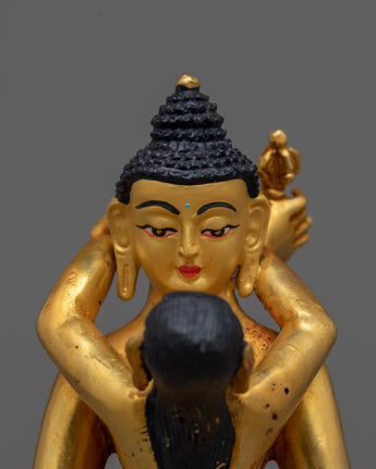 The intricate details of this machine-made monument reflect the spirit of the sacred relationship between Samantabhadra and his bride. It acts as a powerful reminder of the inseparability of wisdom and compassion on the path to spiritual awakening as a sign of enlightened activity and connection. The Samantabhadra and Consort Statue urges you to embrace the transformational force of wisdom and compassion in your journey toward enlightenment, whether as an object of reverence or as a source of inspiration.