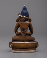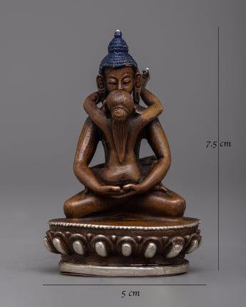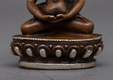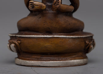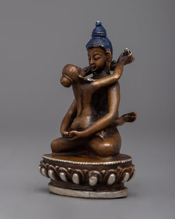 The machine-made Samantabhadra Consort Samantabhadri Statue is a magnificent portrayal of Samantabhadra. It is finished with an attractive silver plating. This 7.5-cm-tall statue represents the union of wisdom and compassion by showing the celestial couple in a harmonious stance. The delicate features are enhanced by the use of oxidized copper as the base material. The overall appearance is made more calm and radiant by the silver plating.
