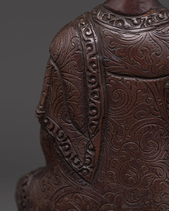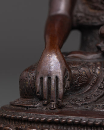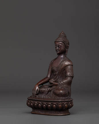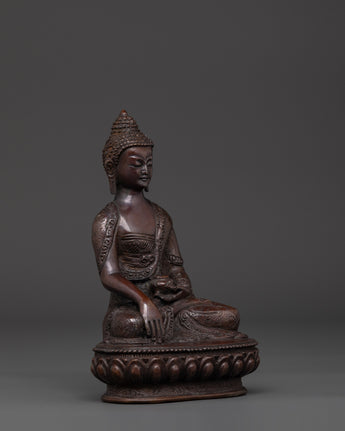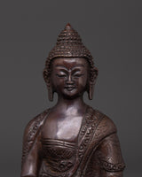 Our Shakyamuni Buddha Handmade Statue presents dimensions of 15.5cm in height and 10.5cm in width, weighing 0.71kg. Crafted from oxidized copper, enhancing both aesthetic depth and symbolic resonance. The oxidation process references the Buddha's transcendence of worldly impermanence while providing a protective surface layer. The proportions adhere to classical iconometric principles, particularly in the earth-touching mudra posture that signifies the historical Buddha's moment of enlightenment. An exemplary devotional object that balances sculptural integrity with doctrinal accuracy for serious practitioners.