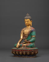 The Shakyamuni Buddha, crafted with precise features, is not only a stunning work of art but also a spiritual treasure that will complement any holy area. The copper body is robust and ageless, while the turquoise and coral inlays symbolize wisdom and vigor. This handmade statue honors the Buddha's teachings and will help you create a sense of tranquility and quiet in your environment. Whether you're looking to enhance your meditation practice or simply desire a meaningful decorative piece, this statue serves as a spiritual companion.