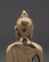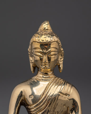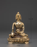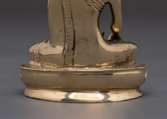This gorgeous Shakyamuni Buddha statue for serene decor is skillfully carved from brass and measures 11.5 cm in height and 8 cm in width, making it an excellent addition to any meditation altar or holy place. The polished golden finish adds to its beautiful form, highlighting the delicate workmanship of the flowing robes and the calm look that conveys peace and heavenly knowledge. Its small size allows it to sit well on shelves, tables, or altars, providing any space with a serene ambiance.