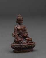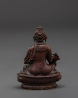 This Medicine Buddha statue, created with meticulous attention to detail, adds a sense of calm and inner serenity to any space. The Buddha of Healing's energy is enhanced by the corroded copper body, which provides an archaic appearance. This Buddhist Healing Art provides a sense of comfort and safety by evoking the Medicine Buddha's ancient healing powers through its peaceful and compassionate presence. Whether you want to strengthen your connection with Tibetan Buddhism or simply add a meaningful ornamental item to your house, this statue will serve as a constant reminder of the power of spiritual healing and balance.
