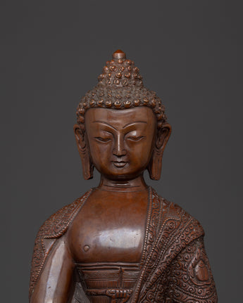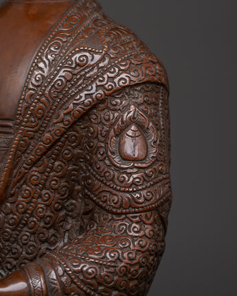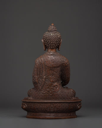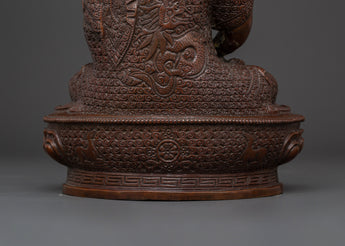 Elevate your spiritual environment with the Tibetan Amitabha Buddha Figurine, representing infinite light and compassion in Buddhism. This meticulously carved statue, 32 cm tall and 21 cm wide, depicts Amitabha Buddha in a meditation stance. Its corroded copper construction and polished, antique finish add to its religious aura. Amitabha, the Buddha of Boundless Light, is renowned for guiding souls to enlightenment and calm. This lovely figurine is ideal for meditation spaces, home altars, or as a centerpiece in a holy space, promoting a sense of calm and spiritual awakening.