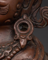 The Tibetan Dzambhala Statue with Consort is a stunning work of Tibetan Buddhist art depicting the mighty deity of wealth and prosperity. This statue is expertly fashioned from oxidized copper and includes rich details that bring Dzambhala and his consort to life. This piece of art is ideal for meditation areas or as a centerpiece for an altar. With its rich symbolism and brilliant craftsmanship, it welcomes success and abundance into your life.