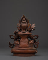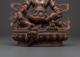 This Tibetan Buddhist statue is a resource for creating positive energy and financial well-being. Whether you set it in your meditation room, living room, or personal shrine, it will provide focus and spiritual enrichment. The statue's oxidized copper finish adds to its beauty and creativity, making it a must-have for any Tibetan art collection.