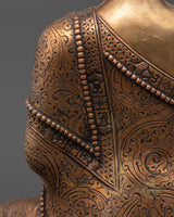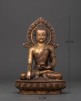 This Traditional Gautama Buddha Statue is a graceful tribute to the Sage of Shakyas. Meticulously crafted from oxidized copper, the statue features gold plating that highlights its intricate details and elevates its sacred presence. Measuring 30cm in height and 21cm in width, it is perfectly sized to grace your home or meditation space, serving as a constant source of peace, wisdom, and inspiration. This statue not only honors the enlightened Buddha but also brings a serene and powerful energy to any environment.