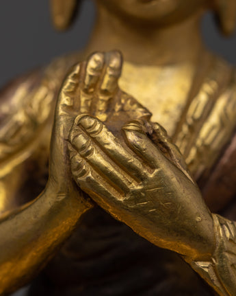 Accept the shining aura of the Vairocana Buddha Statue, a heavenly work of art that invites you to advance your spiritual development. This handcrafted statue, which was created with unwavering devotion, has an acrylic painting that captivates the viewer and a copper body that is lavishly gilded in 24k gold.