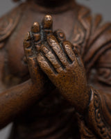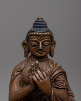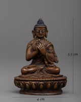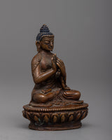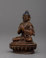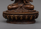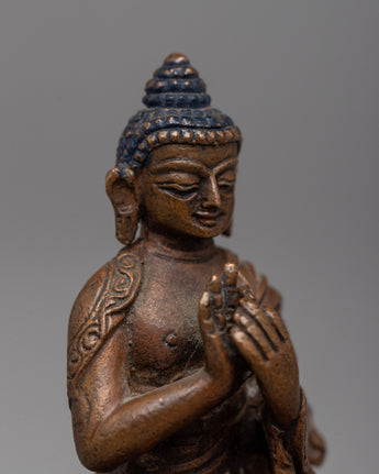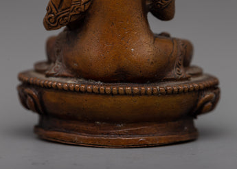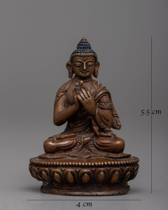 The Vairocana Cosmic Buddha Statue represents the profound essence of enlightenment. This religious masterpiece, machine made with exquisite perfection on an oxidized copper body, stands about 5.5cm tall and 4cm wide, weighing only 0.070 kilogram.