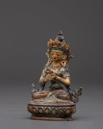 The Vajradhara Tantra Buddha Statue is a significant piece capturing the essence of Tibetan Buddhist art. The statue's intricate design portrays Vajradhara Buddha, the primordial figure in tantric Buddhism, symbolizing the unity of wisdom and compassion. The calm expression on the Buddha’s face and the delicate, flowing robes add to the spiritual aura of this unique piece. It’s the perfect addition to any meditation space, creating an environment of peace and serenity.