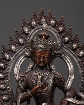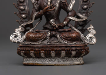 Vajrasattva, the embodiment of purity, assists practitioners in purifying their previous actions and cultivating spiritual regeneration. Meditation on this god promotes mindfulness, clarity, and inner tranquility. This statue serves as a poignant reminder of the path to enlightenment, making it a valuable spiritual tool and a meaningful gift for anyone committed to purification and transformation through Buddhist practice.