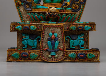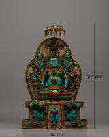 Presenting the Wealth Dzambhala Statue, a magnificent handcrafted copper body that represents success and spiritual richness. With its opulent 24k gold and silver plating and impressive 38.5cm height, this remarkable statue exudes grandeur and elevates its presence to a realm of divine splendor.