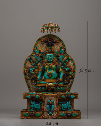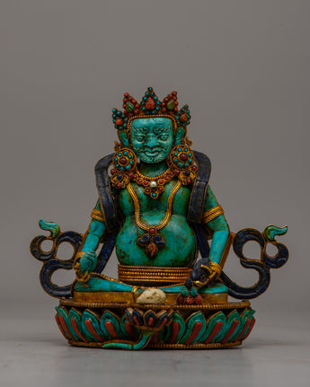 Kubera's Buddhist Sculpture depicts the lord of wealth and the savior of the north. Dzambala's blessing and the value of his practice are universal. It helps us to minimize or reduce all misfortunes and obstacles while increasing all good fortune and happiness.