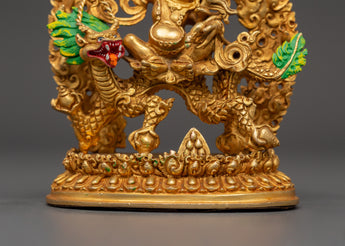 White Dzambhala, a deity renowned for his capacity to provide financial and spiritual riches, is often invoked by individuals seeking safety and financial stability. The dragon, a traditional emblem of strength and protection, increases Dzambhala's status, while the mongoose in his palm represents wealth and prosperity. This intricately crafted monument perfectly captures the marriage of monetary achievement and spiritual enlightenment. It is not just a strong spiritual sign, but also a beautiful ornamental object that attracts positive energy to your house, altar, or meditation area.