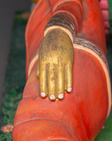 This giant wooden Buddha statue, which weighs 4.18 kg and is made of wood, is attractive, making it ideal for home altars, yoga studios, meditation rooms, and quiet areas of your home. The calming energy of the reclined stance promotes compassion, mindfulness, and introspection. Every element of the carved body combines spiritual legacy with interior design, providing a tangible link to Buddhist iconography. This hand-carved wooden Sleeping Buddha offers beauty and spiritual depth, making it a perfect choice for creating a tranquil haven or as a heartfelt gift for a loved one.