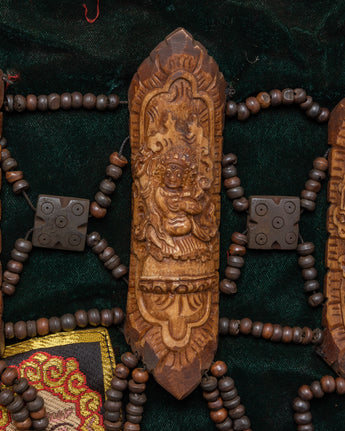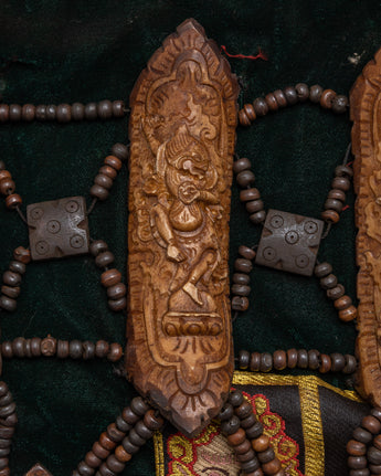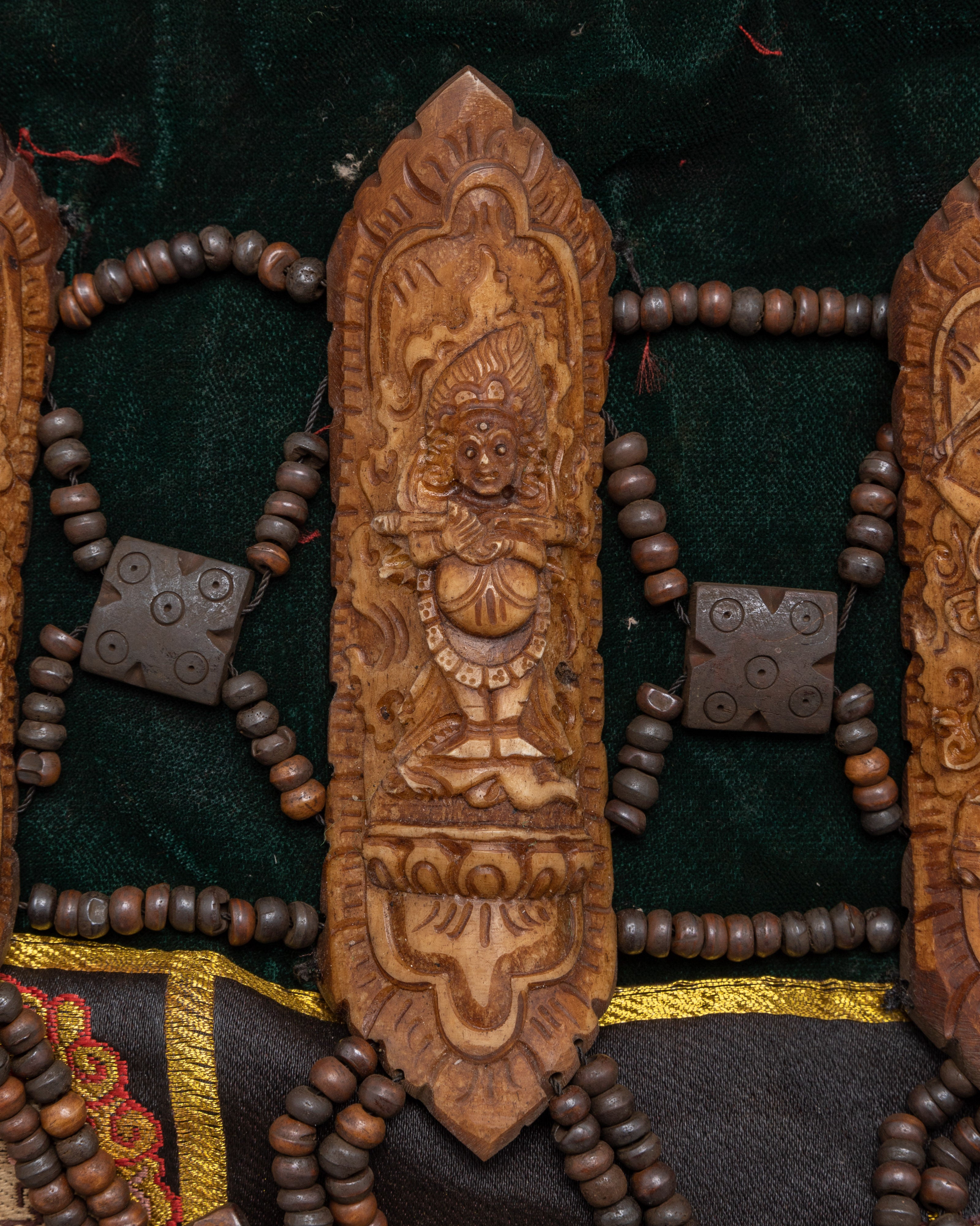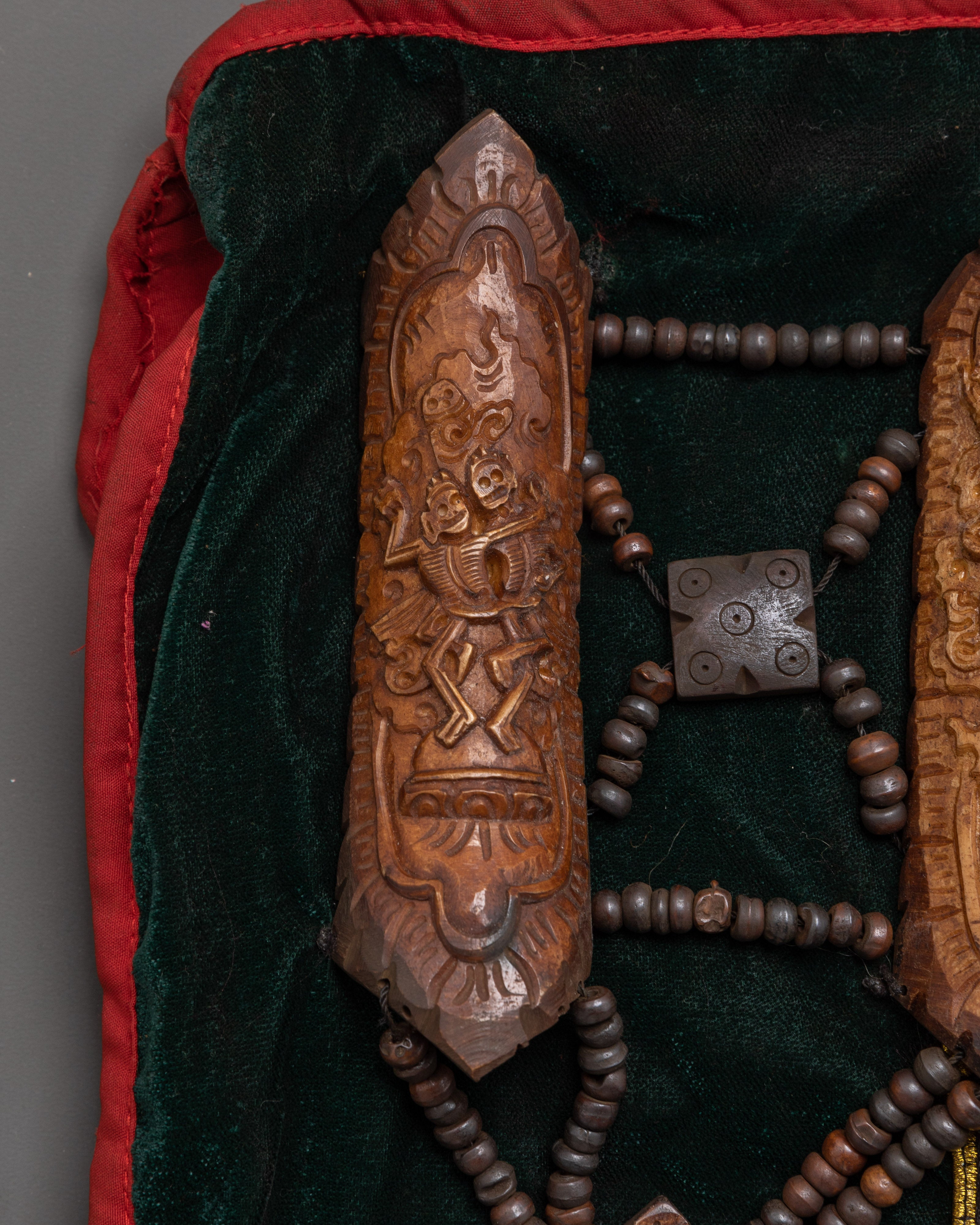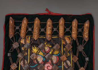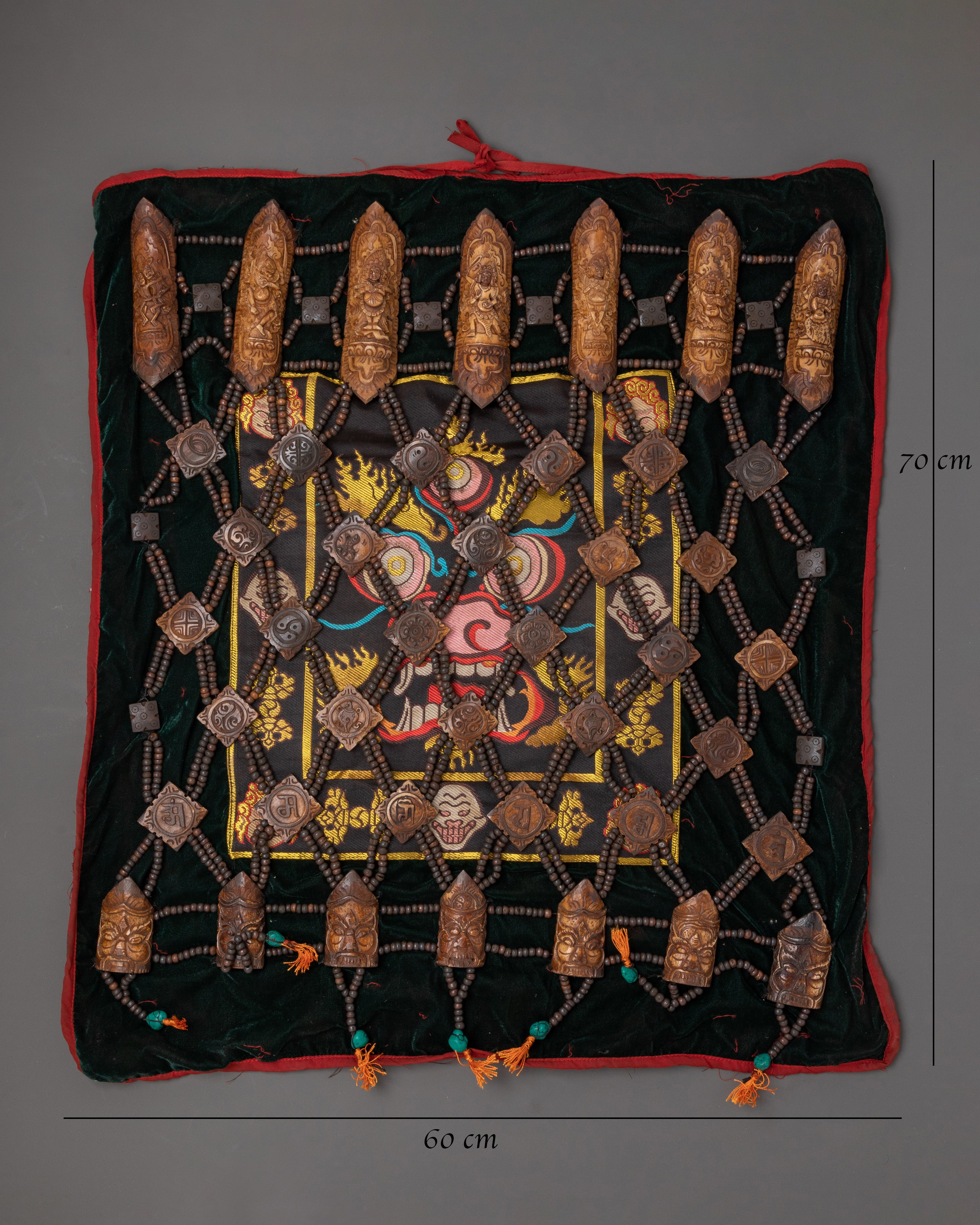 Ideal for anyone seeking to infuse their living space with spiritual energy, the Guru Fabric for Home Decor is a unique addition to any room, meditation space, or altar. The intricate velvet fabric and sacred buffalo bone accents create a harmonious balance of aesthetics and symbolism. This set can serve as a decorative focal point for any spiritual practitioner or as an extraordinary gift for those who appreciate fine art and Tibetan culture.