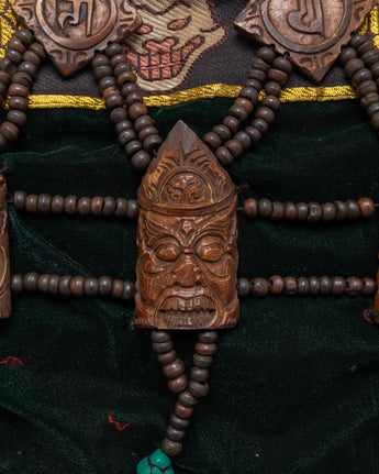 The Guru Fabric for Home Decor is a magnificent and spiritually charged ensemble that adds sacred energy and traditional elegance to any room. This whole ensemble includes a crown, choker necklace, armlets, and an apron made of rich velvet and embellished with ethically sourced buffalo bone. The materials utilized not only underline the necessity of sustainability but also add to the design's profound spiritual and cultural value. This combination, weighing 3.20kg in total, serves as both a statement piece and a spiritual treasure.