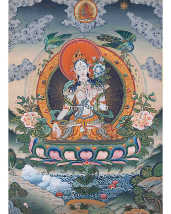 Goddess of Compassion White Tara Thangka Print | Traditional Buddhist Artwork | Gift Ideas
