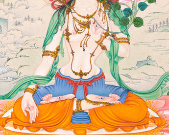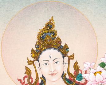 High Quality Digital White Tara Thangka Print | The Serene Goddess of Healing and Compassion