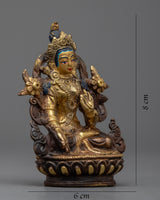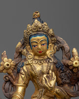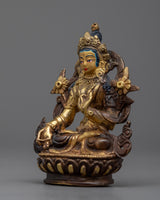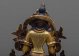 The copper body's accuracy and artistry demonstrate the artisan's commitment to producing a work that radiates spirituality and reverence. The ornate 24k gold gilding highlights White Tara's great spiritual significance by adding yet another level of opulence.