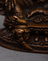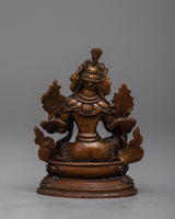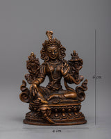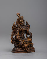 Presenting our Green Tara Statue, which is carefully made on oxidized copper with machine. This statue captures the heavenly spirit of Tara, the embodiment of compassion and enlightenment, and stands a modest 6 cm tall and 4 cm wide. It is small in size, but it has great meaning—it represents Tara's unwavering support and direction. This statue exudes Green Tara's caring energy, which can be used to decorate your own altar or act as a focal point during meditation. It provides comfort and protection for your spiritual journey.