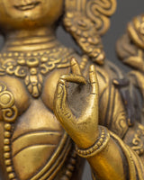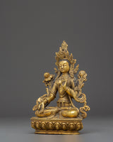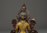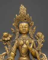 This gorgeous statue, weighing 1.54kg, is both sturdy and perfectly sized for display in any house, temple, or meditation area. The gold plating heightens the figure's divine presence, making it a brilliant center point in your setting. White Tara is renowned to offer protection, long life, and healing powers; thus, this statue is more than just a work of art; it is also an important spiritual instrument. Its stunning design and craftsmanship will fill your home with positive energy, encouraging compassion and knowledge. White Tara is well-known for her healing talents and protective properties, making this statue a vital asset for anybody seeking spiritual balance and longevity. This White Tara statue is ideal for individuals who follow the Buddhist path since it enhances meditation practices and invokes divine protection.