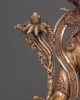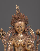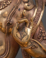 Every element of this Green Tara sculpture demonstrates spiritual artistry and profound symbolism. The lotus flowers on her shoulders represent purity and enlightenment, while her open hand gesture represents generosity and compassion for all beings. The statue's peaceful look and beautiful adornments represent her protective character and merciful attitude. Displaying this sacred figure in your house or shrine brings blessings of protection, compassion, and spiritual development.