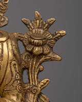 The Green Tara Buddha Statue is meticulously handcrafted on a brass body, demonstrating the artisans' skill and dedication. Green Tara is a revered Buddhist figure known for her compassion and nurturing qualities. Green Tara is depicted in a seated posture, gracefully resting on a lotus base. The use of brass as a material adds beauty and durability to the statue, while the intricate details capture Green Tara's serene expression and divine presence. This handcrafted masterpiece is a symbol of compassion, healing, and protection, reminding Buddhist practitioners of the qualities and teachings embodied by Green Tara.