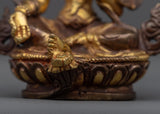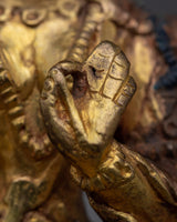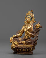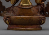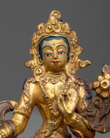 A stunning piece of art, the Green Tara Copper Statue captures the spirit of spiritual elegance and reverence. This magnificent hand-crafted statue has a copper body with lavish 24k gold gilding. It is truly magnificent. It honors Green Tara, the Buddhist tradition's embodiment of protection and compassion.