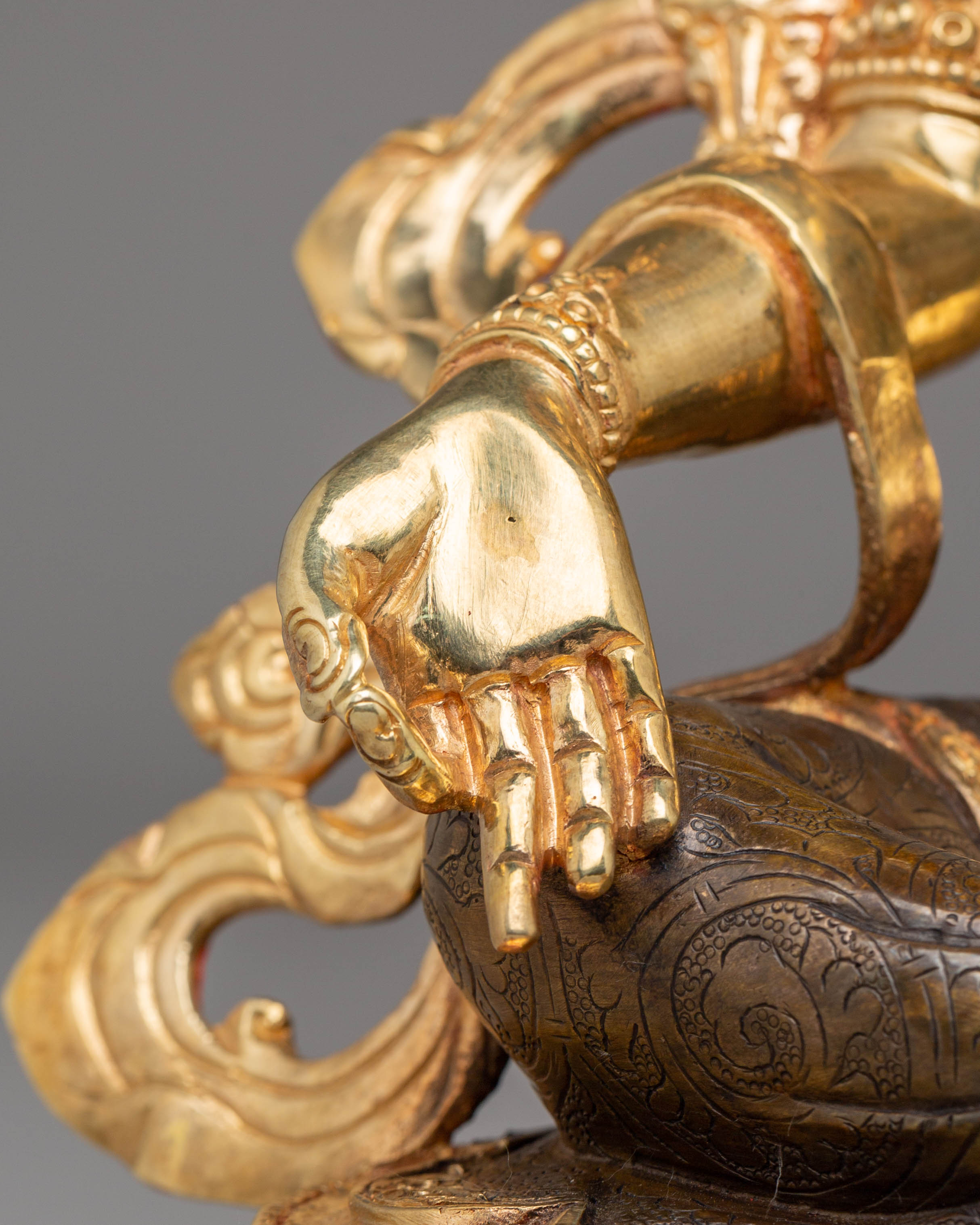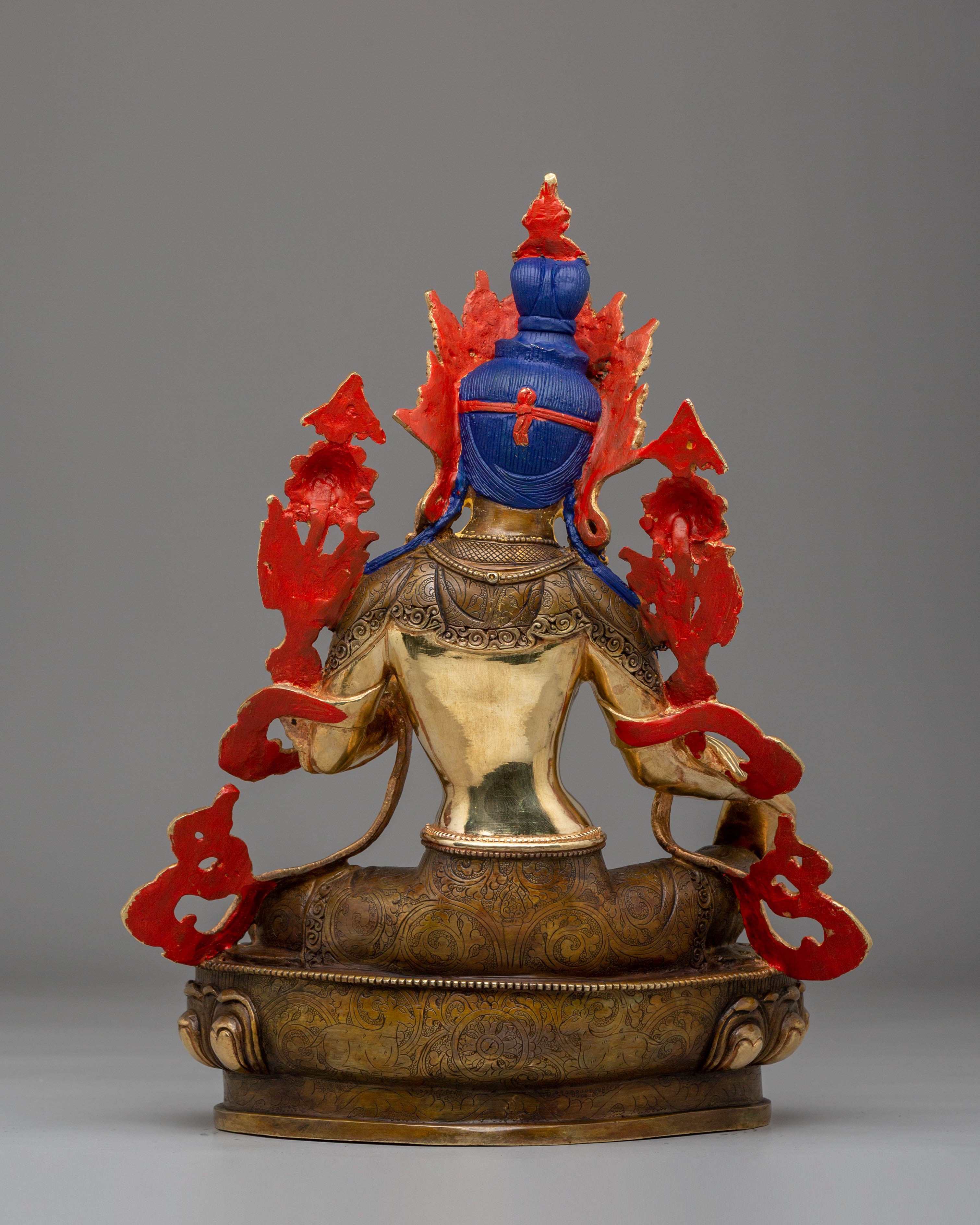 Green Tara is one of the most revered deities in Tibetan Buddhism, symbolizing compassion, swift protection, and empowerment. The 24K gold plating on this statue enhances the goddess’s divine presence, while the vibrant acrylic colors and copper body further accentuate her delicate features. The statue’s serene, nurturing energy encourages tranquility, compassion, and spiritual growth. As a guide for practitioners, Green Tara helps clear obstacles and brings peace to the mind. This beautifully crafted Green Tara Handmade Copper Statue will fill your space with grace, protection, and blessings, making it an essential piece for your meditation practice or Buddhist altar.