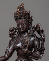 Immerse yourself in the divine grace of the Green Tara Machine-Made Statue, an artistic marvel. This 14cm copper-crafted masterpiece captures Green Tara's compassion with meticulous attention, seamlessly blending traditional symbolism and modern craftsmanship.