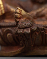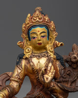 A profound representation of peace and spiritual profundity is the Green Tara Meditation Statue. This statue, which is 7.5 cm tall and has a copper body covered in a magnificent 24k gold gilding, is painstakingly made and represents devotion and spiritual grace.
