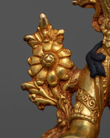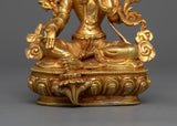 This statue, which is made of copper and has been gilded in 24K gold, exhibits simply artistry and minute details. Its beauty is further enhanced by the acrylic and gold paintings, which depict Green Tara's flowing robes and tranquil look. At a mere 0.574 kg, it strikes the perfect balance between elegance and portability, making it perfect for both decorative and individual use.