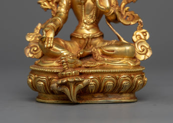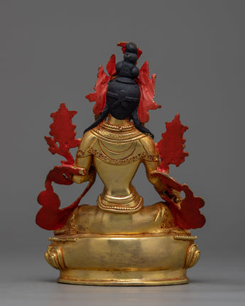 Green Tara Small Gold Gilded Statue | Embodiment of Compassionate Protection